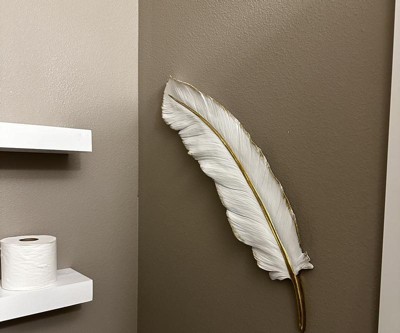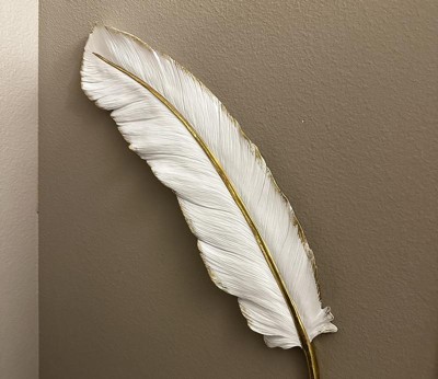 Polystone Bird Feather Wall Decor White - CosmoLiving by Cosmopolitan: Eclectic Style, Resin Frame, Animal Artwork