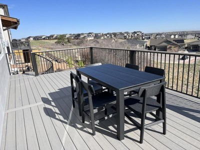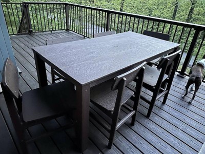 We debated on how to create an outdoor table and chair set. We had to leave our last set when we sold our home, but after buying some other polywood chairs from Costco we looked at the table and chair sets and landed on the Modern Studio. It is quite nice and a great value when you factor in the 6 chairs. I believe it will last a long time and hold up to the wind our covered porch gets. Definitely recommend. Love the black color option also.