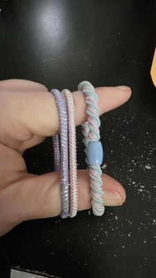 These hair ties are gentle on the hair as they don't have the metal seam and they keep hair in place. I love the variety and all the fun colors and the ones with the beads also look cute around the wrist.