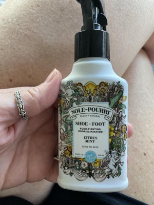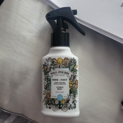 - Stomp out shoe + foot odor with Sole~Pourri Citrus Mint Shoe + Foot Odor Eliminator Spray! Give your shoes and feet a breather! Eliminate the funk—don’t mask it. Harness the power of citrus, mint and plant-based enzymes to leave your feet and shoes smelling fresh.
