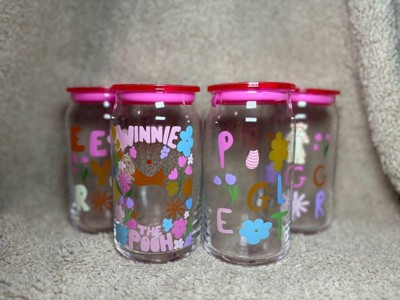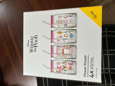 Pooh & Friends Can Tumblers w Lids & Straws, set of 4 16oz