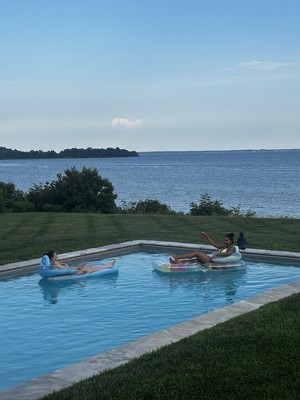 This is the only pool float you’ll ever need. I love how sturdy/heavy duty the float is, which makes it nice that I can use it for more than one year. We take pool floats on vacation with us every year and being able to inflate and deflate to reuse is a great feature. I enjoy the idea of being able to sit in a pool with a beverage and reading so sitting upright is a must have and having the armrest is an added feature. This pool float checks all the boxes for me.