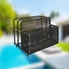 - 【Extra Large Storage Capacity】This organizer measures 39.5"L x 31.5"W x 30"H and features double layers, 2 racks, and a built-in basket (38"L x 11"W x 17.1"H), offering abundant space for pool floats, toys, towels, cushions, buoys, and more—keep your poolside or patio tidy with ease.