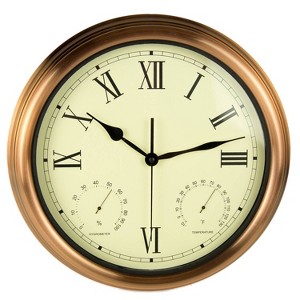 Poolmaster 15" Combination Clock Thermometer Hygrometer for Indoor or Outdoor - Copper
