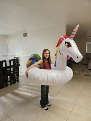 reeived my Poolmaster 48" Party Tube - Unicorn we absolutely love it!! we couldnt wait to get it out of the box .. only took a minute or two to blow it up and we were using it in the pool!! Unicorn float is 4-feet in diameter, and over 3-feet tall has a colorful mane and tail .. we were all able to enjoy it.. this is such a great product ,, i would highly recommend it