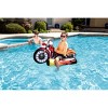 - Fun inflatable motorcycle pool floatie for on-the-water riding and pool game play