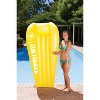 Poolmaster's Suntanner Inflatable Pool Float for adults is large in profile for ample pool lounging room featuring X-Beam construction. An integrated pillow allows for head and neck support while relaxing on the water. This pool mattress is perfect for lazy days at the pool, sun tanning or reading a book while lounging in the pool. It comes in assorted bright colors of yellow, pink and blue, all colors pop off the water. Measures 72.5-inches x 33.5-inches, approximate deflated size.
