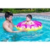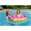 Learn-To-Swim products are designed to aid young swimmers at all stages of learning. The Flower Baby Pool Float Rider provides pre-swimmers with the confidence of getting comfortable in the water. Comfy yet dependable construction and fun design help to create an enjoyable water experience while building water confidence. These baby pool floaties are designed with secure drop-pocket seats with ample leg and sitting room for comfy crusin' around the water. Scalloped edges around this 34 inch diameter rider add visual fun to the beautiful bloom designs. Choose from yellow or pink vinyl flowers. Recommended for ages 8-24 months.