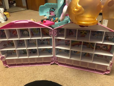 [This review was collected as part of a promotion.] This toy is so cute! It kinda looks like a big fancy perfume bottle,it comes with one cutie tootie, ours was a mermaid unicorn bunny, a pack of Unicorn glitter and slime. You open up the top independently of the case to find the toy. It has another compartment on front that opens for slime display. The compartments inside the case each have a cute picture there is 25 compartments so you will have plenty of room to store the toys. And lastly, you get 2 slime storage containers with 6 compartments for slime or other small poopsie toys. Our 7 yr old played with this for quite awhile and we will be buying more poopsie toys