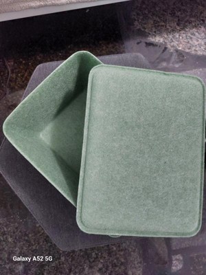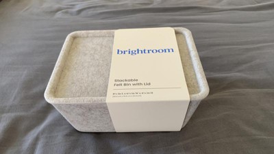 Beautiful stackable felt bin with lid. The bin is not that big, but it is perfect for small items in a cabinet or for the bathroom or maybe a kids bedroom. Personally I would not pay 10$ for it. For a small bin I think the price is a bit too high.