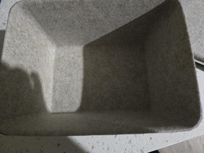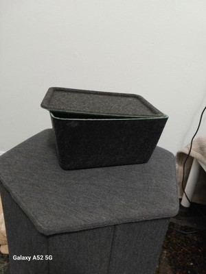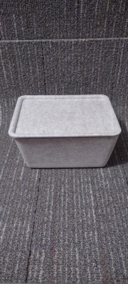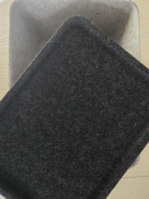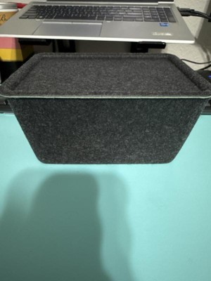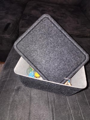 This bin is very study. The top sits on top of the bottom to form a nice seal. Felt is mininally felt on the skin. Darker grey outside lighter gray inside. Nice for extra storage of smaller items.