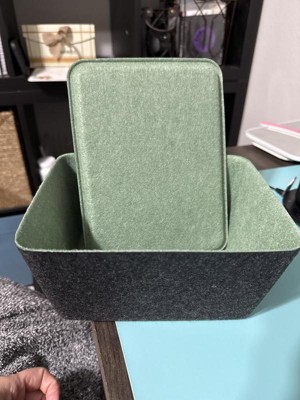 A nice little box for loose ends and use inside a drawer. It is tapered, so the top is wider than the bottom, which isn't my favorite thing, but it still fits a lot. I do like that the entire thing is felt, so nothing can get scratched inside, and it also slides well. I actually use the giant felt bins on the floor of my pantry for that reason. It was great to swipe all the little detritus that was left on my island before people came over.