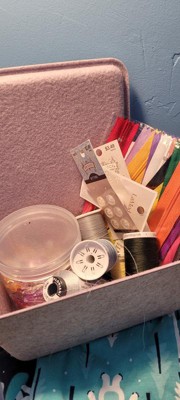 Cute Little Box. It is a good size to store little items in like my sewing stuff at my machine, craft supplies, pencils, small fidget toys, etc... i like that it has a lid so i can stack multiples, or just hid things so it doesnt look so cluttered. The fabric coating is a nice muffler for noises that normally accompany plastic boxes. It also goes a long way to soften the plastic-look and make it look nicer.