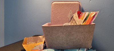 Store your sunglasses, scarves and other items in the Pop Color Felt Bin from Brightroom™. This rectangle bin comes with a lid to help keep the contents nicely covered and adds a pop of color to your space. Made of felt, this storage bin can be placed on a shelf, in a closet or anywhere else to help optimize storage space.