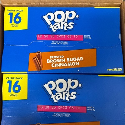 Pop-Tarts toaster pastries are the perfect sweet treat at breakfast, for lunch snack time, or dessert. Featuring a sweet brown sugar cinnamon-flavored filling and delicious frosting on a soft pastry crust, this ready to eat treat is perfect for snack time for kids and adults on the go. Pack Pop-Tarts Frosted Brown Sugar Cinnamon in lunchboxes or backpacks when it's time for school snacking, or stock the office pantry with this individually wrapped grab and go adult snack time choice. Pop them in the toaster and pair with milk, create your own ice cream sandwiches, or incorporate into your favorite dessert recipe for a sweet treat. These irresistible snack time options for kids and adults provide a good source of three B vitamins. Stock your pantry with these shelf stable snack alternatives and enjoy ready to eat treats anytime. A flavor for everyone, including beloved classics like Frosted Strawberry or Frosted Cherry, or our more indulgent flavors, Frosted Cookies and Creme or Frosted Chocolate Fudge.