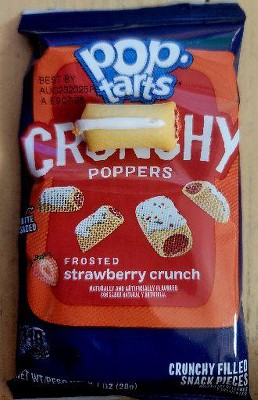 Bought these not realizing they weren’t the same thing as the Pastry Bites (pictures on the book look basically the same). And I was utterly disappointed upon trying them. They’re way smaller than the bite size pastry bites. “Crunchy poppers” is because crunch is literally all there. There’s filling but you cant even taste it. Basically just eating the plain crust part of a regular poptart. They were on a buy two sale so now I’m unfortunately stuck with 2 boxes. If you want something similar besides a regular ol pop tart, get the pastry bites instead. WAY better