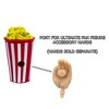- This classic striped popcorn accessory measures 1 inch long and features a buttery sculpted top for authentic arena vibes.