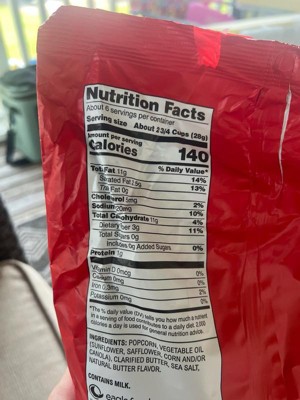 popcorn, vegetable oil (sunflower, safflower, corn and/or canola), clarified butter, sea salt, natural butter flavor' '