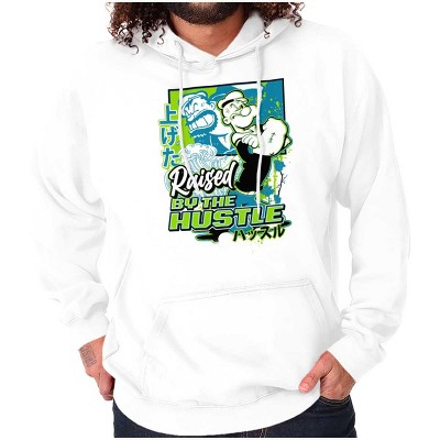 Popeye Hustle Hard Strong Finish Hoodie Hooded Sweatshirt Men Licensed Brisco Brands White l