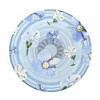 So cute! It’s semi transparent and light purple/lilac colored with small flowers.