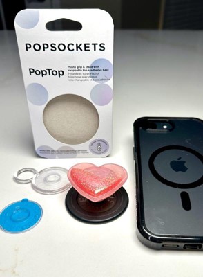 [This review was collected as part of a promotion.] This PopSocket PopTop is pretty cool. I like that it works with both the included adhesive base and the MagSafe base. It feels durable and helps keep my phone secure in my hand. I also use it as a little kickstand when my phone is on my desk, which is really convenient. The PopSocket is lightweight and thin, so it doesn’t add much bulk to my phone, and my phone still slides in and out of my pocket easily. It’s easy to push down and twist off whenever I want to remove it, and the cute, glittery pink heart is squishy and fun.