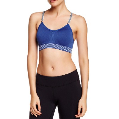 POPSUGAR PS Strappy Sports Bra for Women Blue Mist - Criss-Cross Back Padded Yoga Bra Workout Tops & Removable Cups Medium