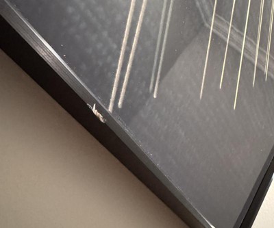 Arrived with the frame scratched and dented. The product photo makes It appear as though the starburst is metal, but this is actually a poorly printed photo of a metal starburst. Should have been priced no higher than $49.99