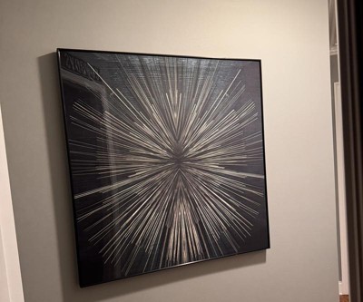 - Modern wall decor highlights a square framed, starburst art design made from crystal porcelain