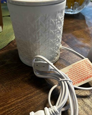 [This review was collected as part of a promotion.] I really like the design of this wax melter. You cannot tell from the picture, but the white color is actually matte. The plate for the wax to melt seems very sturdy and that it will hold a good amount. I also like the on off switch on the plug. this makes it so that you can leave it plugged in, but still be able to turn it on and off. The basket weave design is very cute and trendy. I received an incentive to write this review.