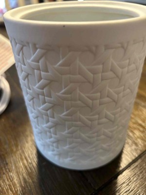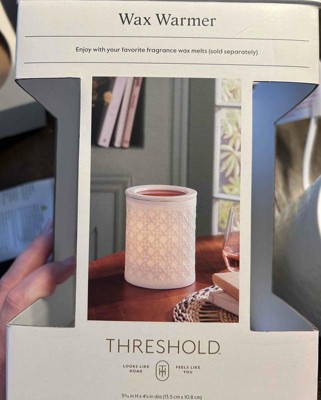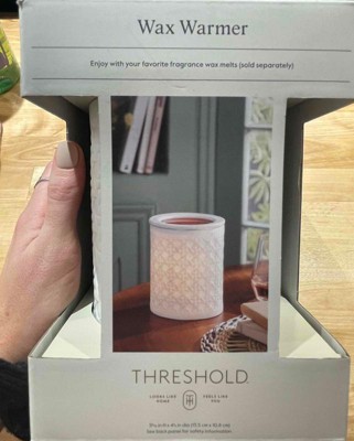 [This review was collected as part of a promotion.] We are pleased to review this porcelain white bamboo style wax warmer by threshold brand. This wonderful wax warmer has a unique design on the side, which makes it quite a talking point. This wax warmer conveniently holds at least two wax cubes and makes the aroma of your scent very noticeable. I like that it is a well-made material and that it should last a long time. Since the color is a neutral tone, will easily match any of your decor I received an incentive to write this review.