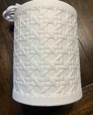 The Porcelain with Bamboo Pattern White Wax Warmer from Threshold™, brings a creative touch into your home. Acting as a safe alternative to traditional candles, this device emits a subtle illumination. Just plug it in for a serene ambiance. Additionally, with its bamboo pattern, this wax warmer from Threshold™ serves as a fashionable night light, sprucing up the overall style of your surroundings.