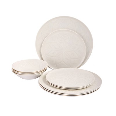 Porland 7" 4pk Porcelain Be Happy Quotes Dessert Set White: Modern Dinnerware, Dishwasher & Microwave Safe, Service for 4