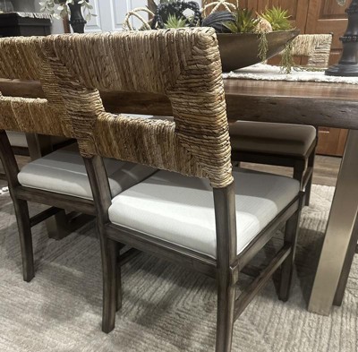 Fill your dining room with the rich Bohemian vibes exuded by the Porsha dining chair. Made in Indonesia, this stunning Boho style piece consists of a solid mahogany wood frame adorned with natural rattan and fitted with a fabric upholstered seat cushion. Its openwork design blends beautifully with a wide range of room layouts while enabling light to flow naturally throughout the space. The Porsha will arrive fully assembled and features angled back legs for excellent stability and support in pleasant design. Delivering superb comfort with an exotic flavor, the Porsha dining chair transforms any dining space.