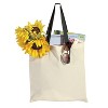 A light compact basic carryall tote at a great value. 100% cotton sheeting Reinforced stitching on handles Dimensions: 15.75 h x 15.25 w Handle Length: 21.5 Note: Bags not intended for use by children 12 and under. Includes a California Prop 65 and social responsibility hangtag.
