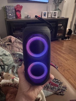 Great little Bluetooth speaker! Super easy to connect and love that the lights can change color and modes while you play music. Sound quality is good for the size of the speaker too. Was able to turn this up during a work holiday party and the music wasn’t muffled. I also like the strap so I can just grab and go.