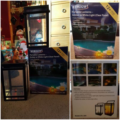 [This review was collected as part of a promotion.] My Techko Solar Portable Lanterns arrived about 2-3 weeks ago and I just love them. They came in a pack of two, have clear panels and you can choose from either white or amber light. So far, I am partial to the amber light, but the white light is handy when you need that extra brightness. It is recommended that you charge these outside for optimal charge, but since our weather here has been kind of crazy with winds blowing away our shutters, I choose to just place them on my window cell and they still work great. I know the lanterns are for outdoor use, but they have come in very handy indoors lately with all the power outages we have been having. The lanterns are a great size (5.23” x 5.19” x 7.87”). They must be on the “on” position when charging and will automatically turn on at dusk and off at dawn. They are waterproof, so they can withstand the rain. Love the fact that since it’s solar there are no cords to deal with. And the claims that they last 12+ hours/all night is true, I went to bed at 3 am and the lights in the lanterns were still on and very bright. The Techko Solar Portable Lanterns are great to have whether it’s to use in the yard, on the deck, out camping or when you have a power outage. I plan on buying a few more and I definitely recommend them. Pro’s: • Solar powered, so no cords • Charge last all night • Choice of White or Amber Light • Waterproof • Automatically charges and turns on at dusk and off at dawn. Con’s: • None