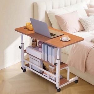 Portable Rolling Desk w/Wheels, Mobile Computer Desk for Small Space, Small Standing Desk with Shelves for Home Office Study, Sofa Side Table