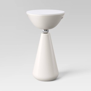 Add modern elegance to your home decor with the Portable Table Lamp from Room Essentials™. This white table lamp has a bowl-shaped top with a cone-like base for a standout look you'll love. Made of metal, this table lamp has a variable brightness control feature to help you customize the lighting according to your needs. It's designed with a non-removable integrated bulb and a battery life of up to 6 hours. Made of metal, this lamp is designed with a touch-activated sensor for easy on and off and requires 1 18650 lithium-ion battery for operation.