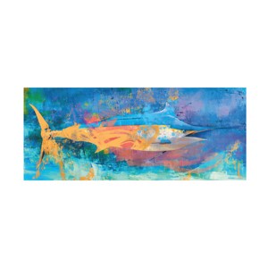 This ready to hang, gallery-wrapped Wall Décor Living Room Canvas by Trademark Fine Art features a painting of a fish on a blue background. that'll look great in any bedroom, kitchen, bathroom, or apartment. Whether it's contemporary, rustic, modern, or traditional style wall décor, Trademark Fine Art offers a variety of high-quality, carefully built wall art that will surely complement any style with art themes that range from fascinating abstracts to breathtaking landscapes. Each bathroom wall art canvas is printed on durable cotton poly blended canvas using Giclee, a process for creating high-quality fine art reproductions that are nearly indistinguishable from the original piece. From the bedroom to the living room, or even the office, Trademark Fine Art makes professionally handcrafted, ready to hang wall décor that will be admired for years to come.
