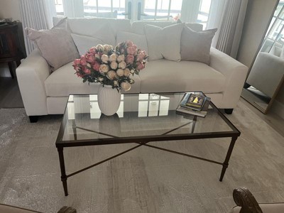 Porter Rectangle Coffee Table Bronze: Contemporary, Gold Frame, 5mm Tempered Glass Top