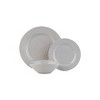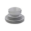 - Includes four 11" dinner plates, four 8" salad plates, and four 7.5" bowls in a unique, tactile Grey design.