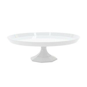- 11.6" round plastic cake stand made from durable, food-safe plastic.