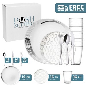 Product Name: Posh Setting 112 Piece White And Silver Plastic Party Bundle - Whisk (16 Settings)