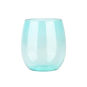 Posh Setting 12 oz Aqua Plastic Disposable stemless Wine goblet - 6 Pack