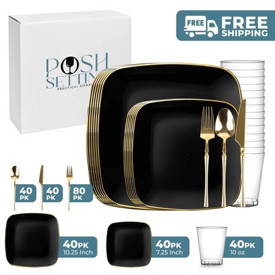 Product Name: Posh Setting 280 Piece Black And Gold High End Plastic Party Bundle - Edge (40 Settings)
