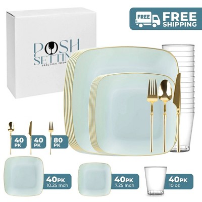 Product Name: Posh Setting 280 Piece Green And Gold Plastic Party Bundle - Square Edge (40 Settings)