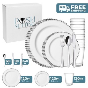 Product Name: Posh Setting 840 Piece White And Silver Plastic Party Bundle - Beaded (120 Settings)