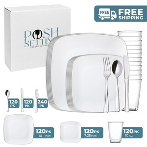 Product Name: Posh Setting 840 Piece White And Silver Plastic Party Bundle - Classic Square (120 Settings)