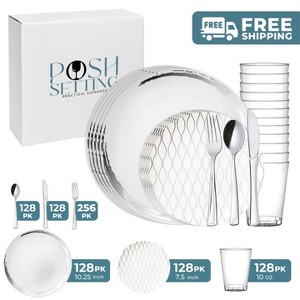 Product Name: Posh Setting 896 Piece White And Silver Plastic Party Bundle - Whisk (128 Settings)