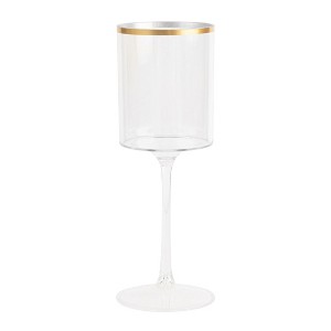 Posh Setting 9 oz Clear with gold rim Plastic Disposable Stemmed Wine Cup - 5 Pack